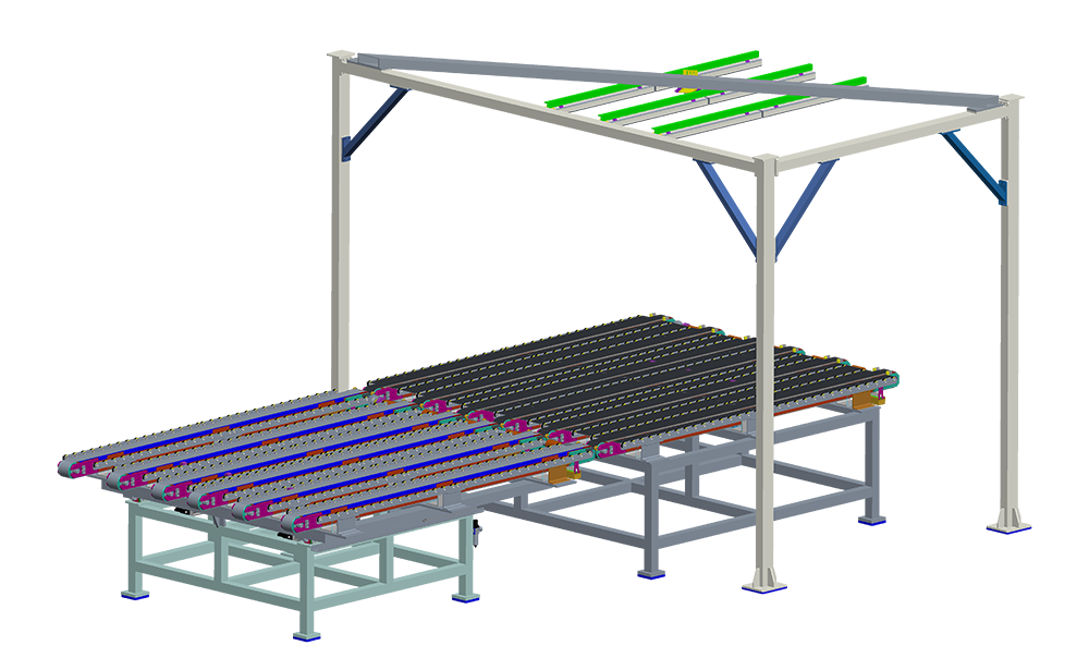 The entire upper surface of the optical centering conveyor is designed in black. It adopts the robot visual recognition technology to automatically adjust the trajectory of the robot. It has high flexibility and is more suitable for the production of special-shaped double-sheet materials.